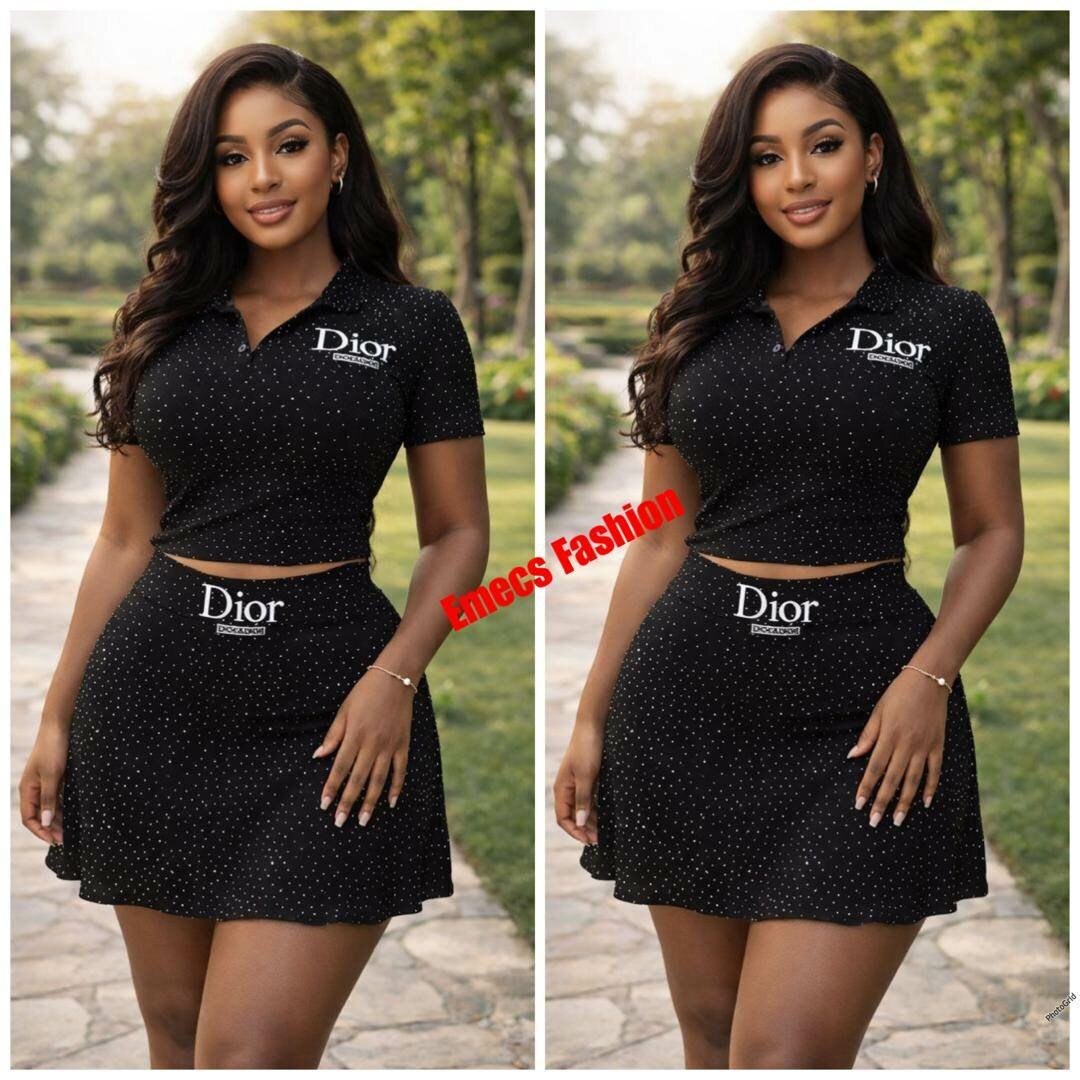 Optez pour cet ensemble deux pièces féminin et élégant comprenant un top court polo et une jupe fluide à pois. Parfait pour l'été, il allie confort et style.