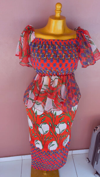 Ensemble deux pièces chic et moderne, composé d'un haut court et d'une jupe longue ajustée. Idéal pour les occasions spéciales ou une sortie en ville. Tissu confortable et détails élégants pour un look raffiné et tendance.