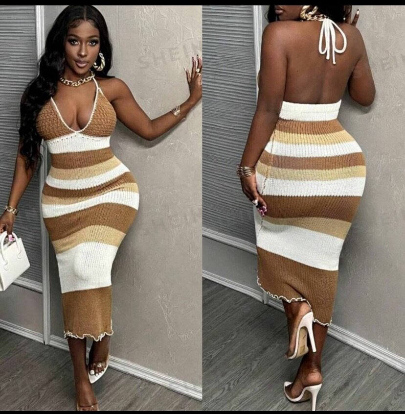 Découvrez cette magnifique robe dos nu à rayures, parfaite pour attirer les regards avec style. Idéale pour les soirées ou occasions spéciales, sa coupe flatteuse ajoute une touche d'élégance à votre garde-robe. Fait en matériau doux, elle assure confort et allure chic.