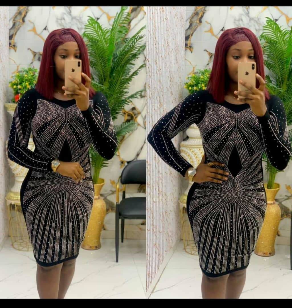 Robe moulante noire ornée de strass pour soirées chics. Design élégant et moderne, idéal pour des événements spéciaux. Confortable et flatteuse, cette robe mettra en valeur votre silhouette.