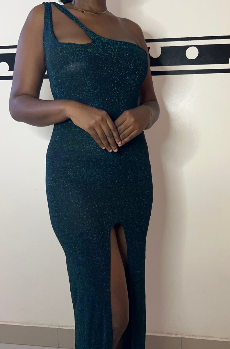 Découvrez cette robe scintillante à une épaule, parfaite pour une soirée glamour. Avec sa coupe ajustée et sa fente avant, elle mettra en valeur votre silhouette. Idéale pour les occasions spéciales.