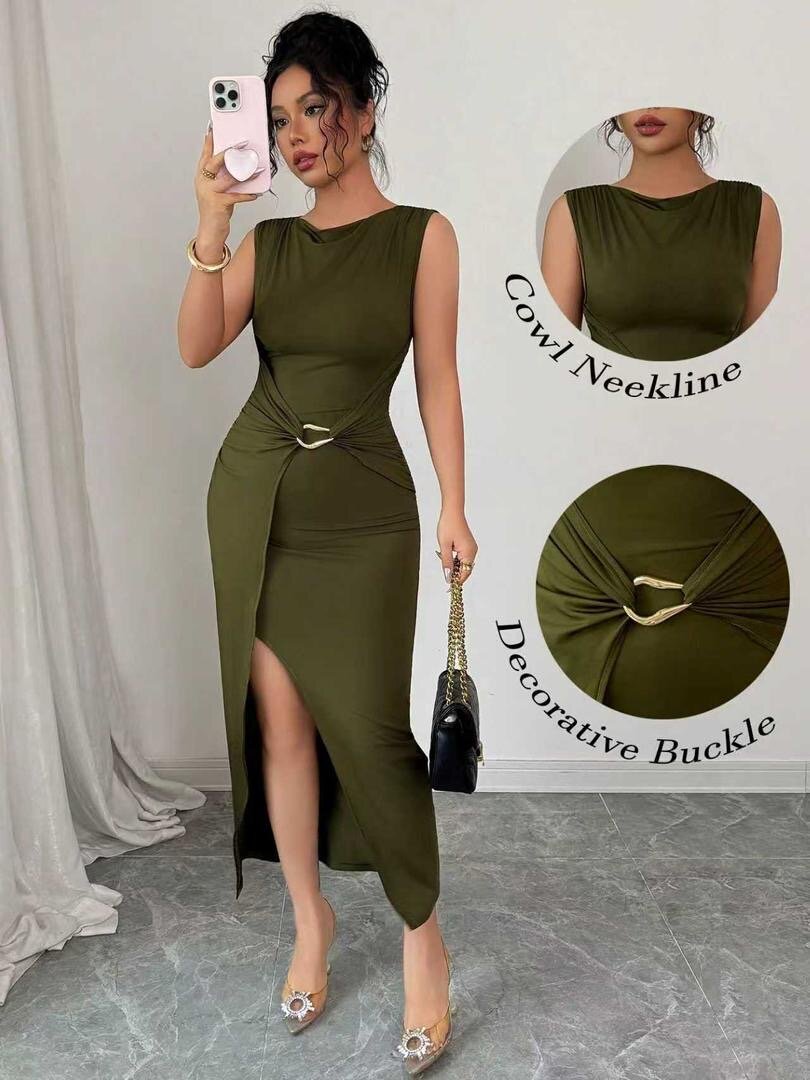 Découvrez cette robe chic avec son encolure drapée et sa boucle décorative. Conçue pour sublimer votre style lors des soirées ou événements spéciaux. Fabriquée pour offrir confort et élégance, elle est idéale pour toute femme cherchant à impressionner. Un incontournable pour votre garde-robe!