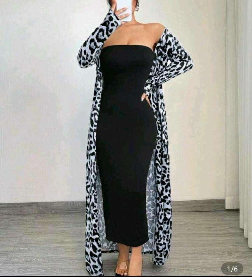 Découvrez l'élégance de notre robe noire sans bretelles accompagnée d'un cardigan imprimé léopard. Parfaite pour des soirées chics, cette tenue rehausse votre style tout en offrant confort. Idéale pour les femmes souhaitant un look moderne et audacieux. Disponible en plusieurs tailles pour un ajustement parfait.