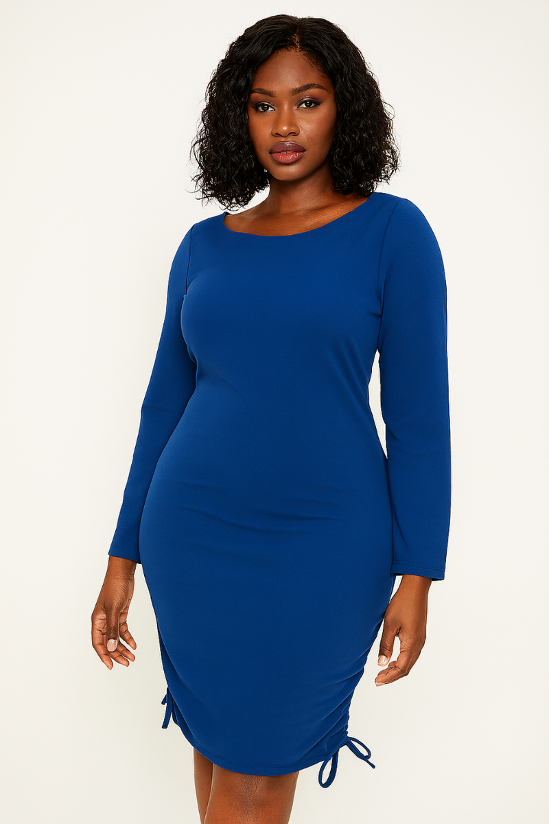 Découvrez notre robe élégante en bleu, parfaite pour toutes vos occasions spéciales. Confectionnée pour s'adapter parfaitement aux silhouettes plus généreuses, cette robe offre style et confort. Les manches trois-quarts ajoutent une touche de sophistication, tandis que le tissu extensible garantit une aisance totale. Idéale pour des soirées, des événements professionnels ou des dîners. Faites sensation avec cette robe incontournable.