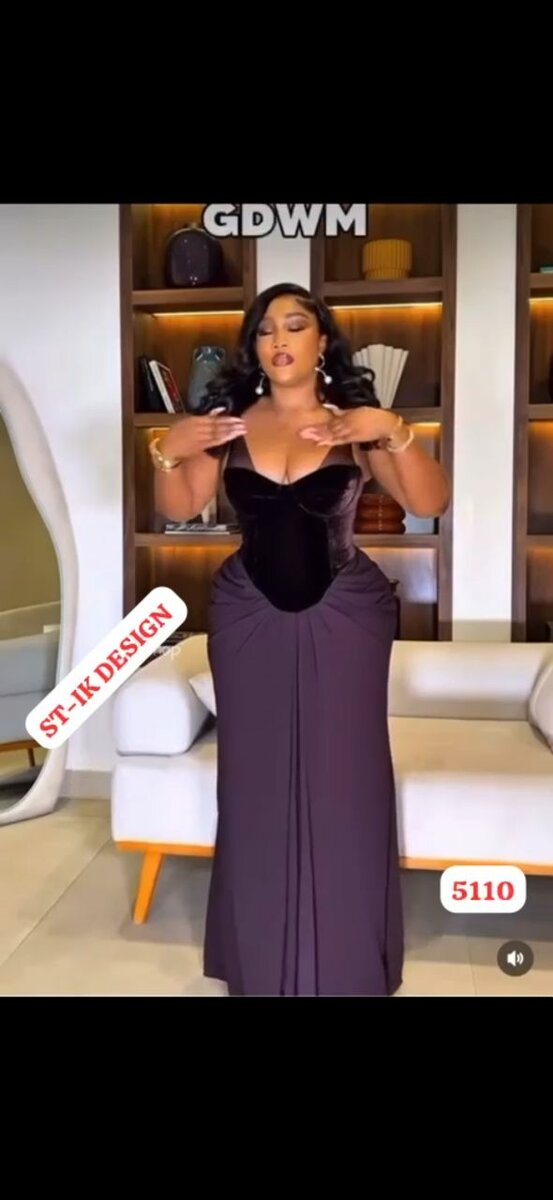 Robe longue en velours noir, parfaite pour les soirées formelles et événements élégants. Design flatteur soulignant la silhouette.