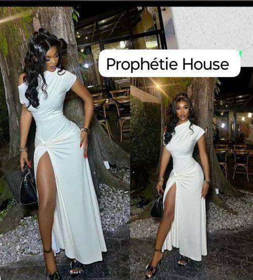 Découvrez cette robe blanche sophistiquée avec une fente audacieuse. Parfait pour une soirée élégante ou un grand événement. Confort et style assurés.