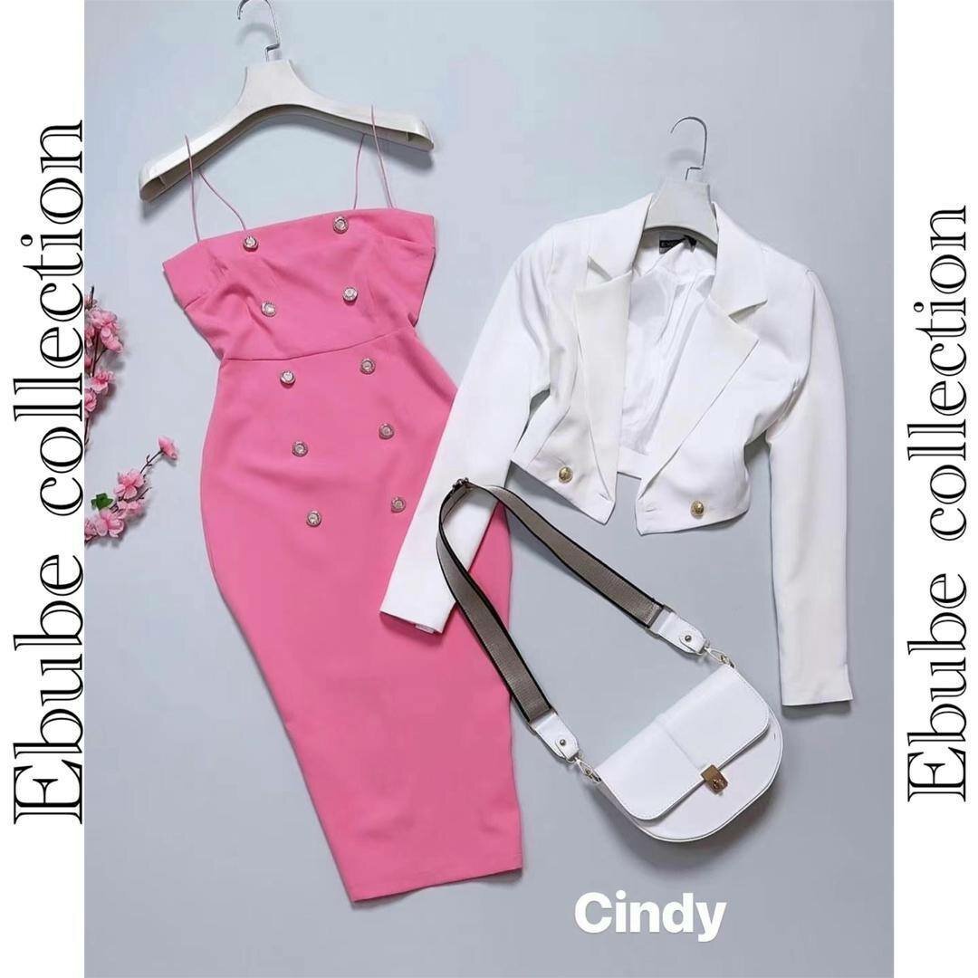 Découvrez la robe élégante en rose, parfaite pour les occasions spéciales. Complétée par une veste chic blanche et un sac moderne, ce look est idéal pour être à la fois sophistiquée et tendance. Le choix parfait pour soirées ou dîners.