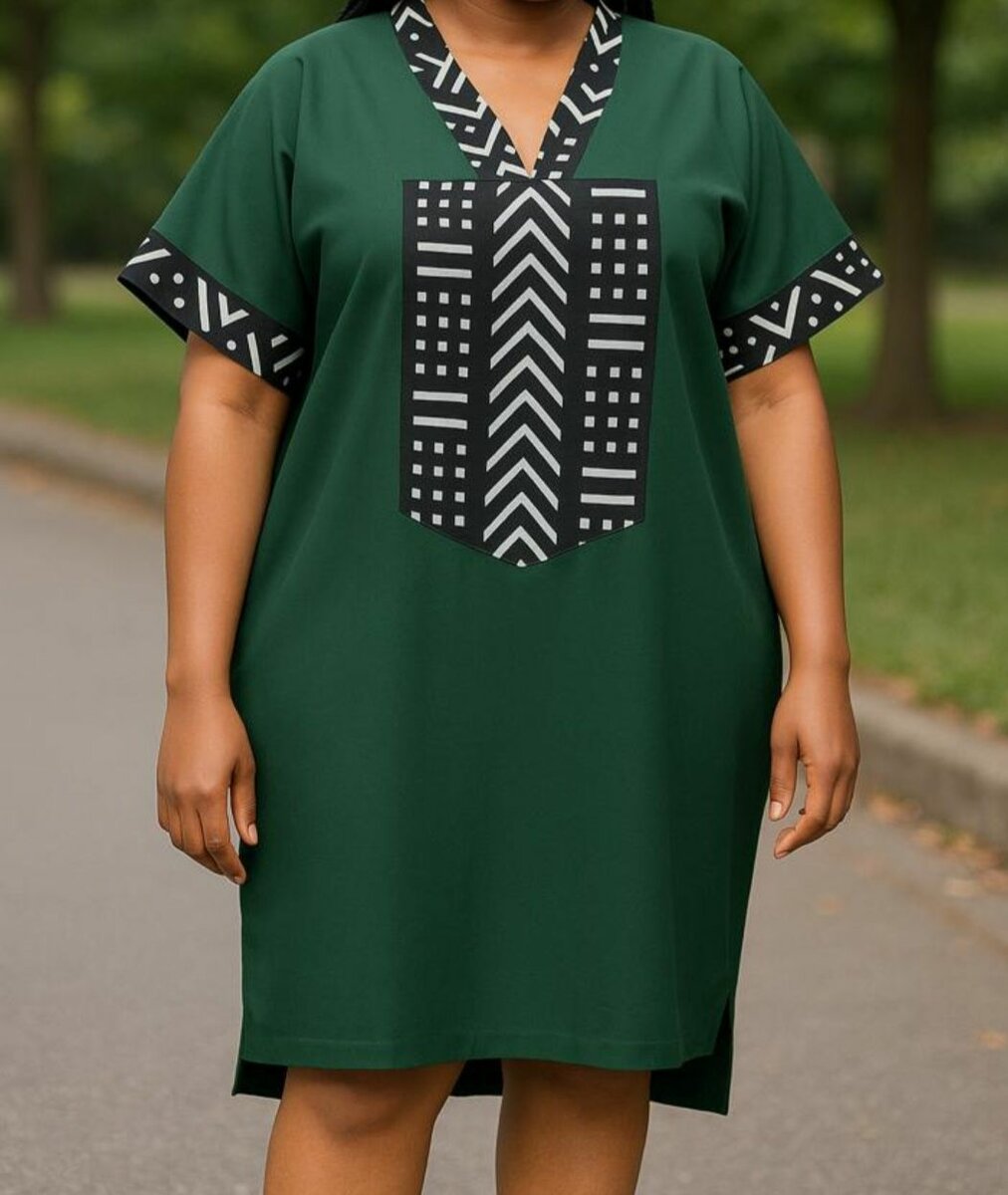 Découvrez cette élégante robe émeraude ornée de motifs ethniques noirs et blancs. Conçue pour un confort optimal tout en restant stylée, elle est parfaite pour les sorties décontractées ou les événements spéciaux. La coupe ample assure une liberté de mouvement, tandis que les motifs ajoutent une touche d'originalité. Idéale pour celles qui recherchent confort et style.