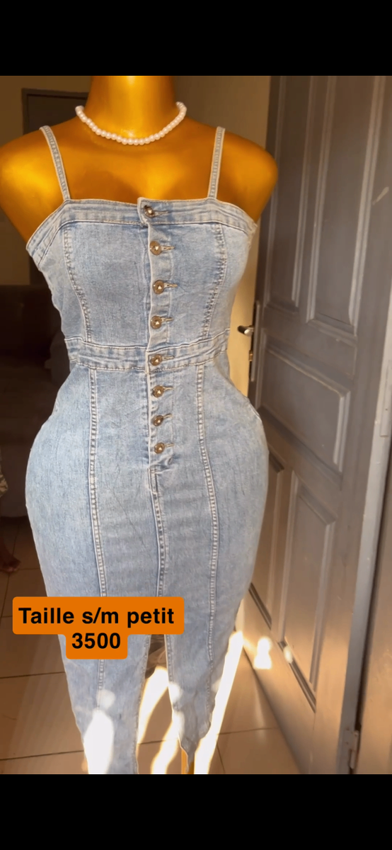 Découvrez cette robe en denim, parfaite pour un look décontracté et tendance. Disponible en taille S/M, elle sculpte la silhouette avec élégance. Osez l'allure intemporelle du denim !