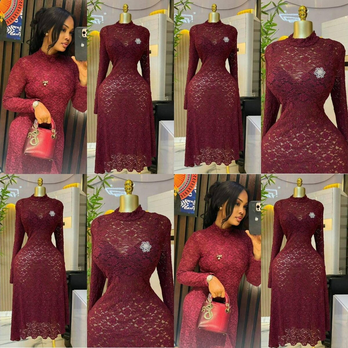 Découvrez l'élégance pure avec cette robe en dentelle bordeaux, idéale pour les soirées et occasions spéciales. Confectionnée pour épouser les courbes, elle offre un style raffiné et sophistiqué. Sa broche délicate ajoute une touche de luxe. Parfaite pour celles qui veulent briller avec élégance.