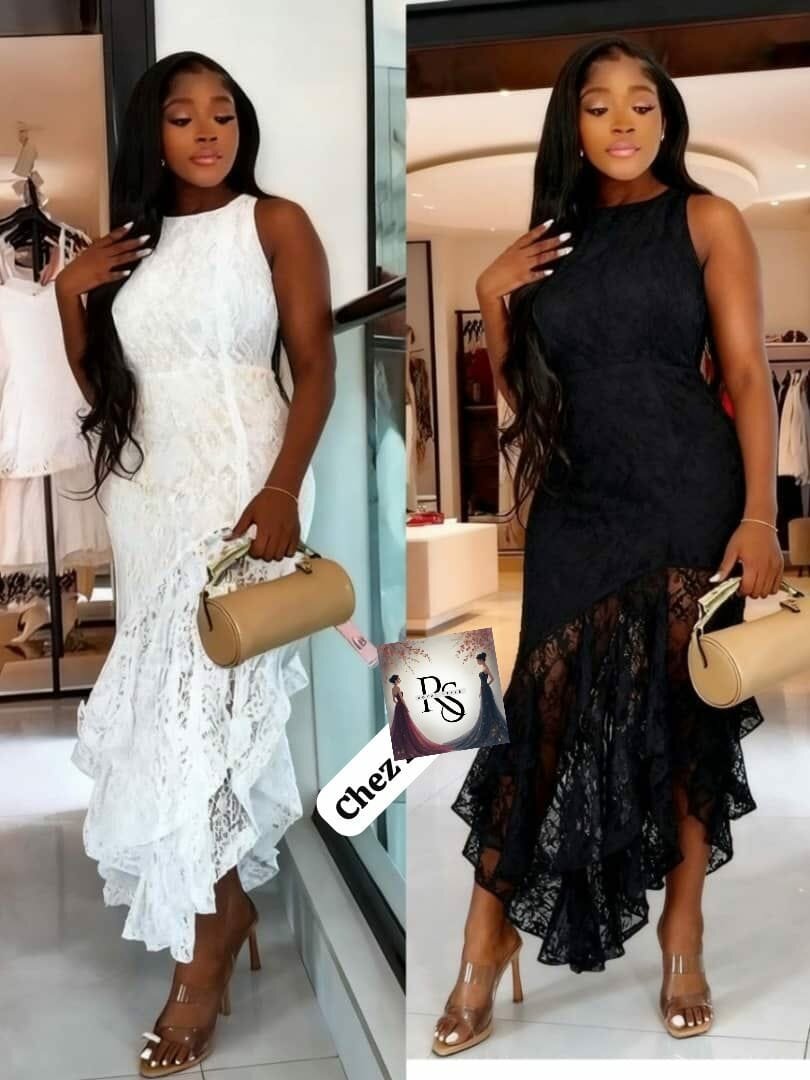 Découvrez notre robe en dentelle, parfaite pour les soirées et les occasions spéciales. Disponible en blanc et noir, elle offre une silhouette chic et féminine avec sa coupe asymétrique. Un choix incontournable pour briller avec style.