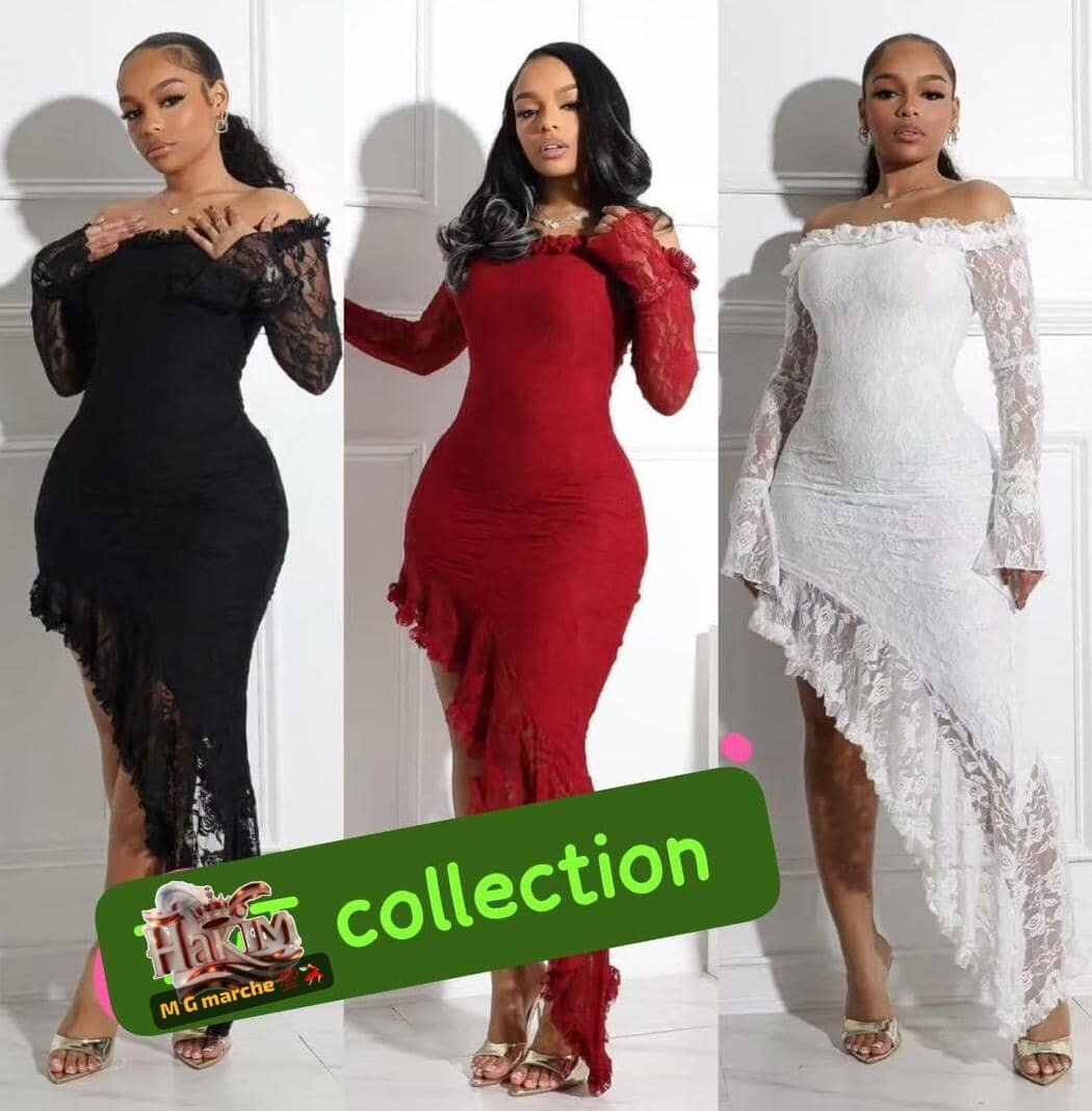 Découvrez notre robe en dentelle élégante, parfaite pour les soirées et les occasions spéciales. Disponible en noir, rouge et blanc, elle offre une coupe asymétrique moderne et des détails en dentelle raffinée qui ajoutent une touche de glamour à votre look.