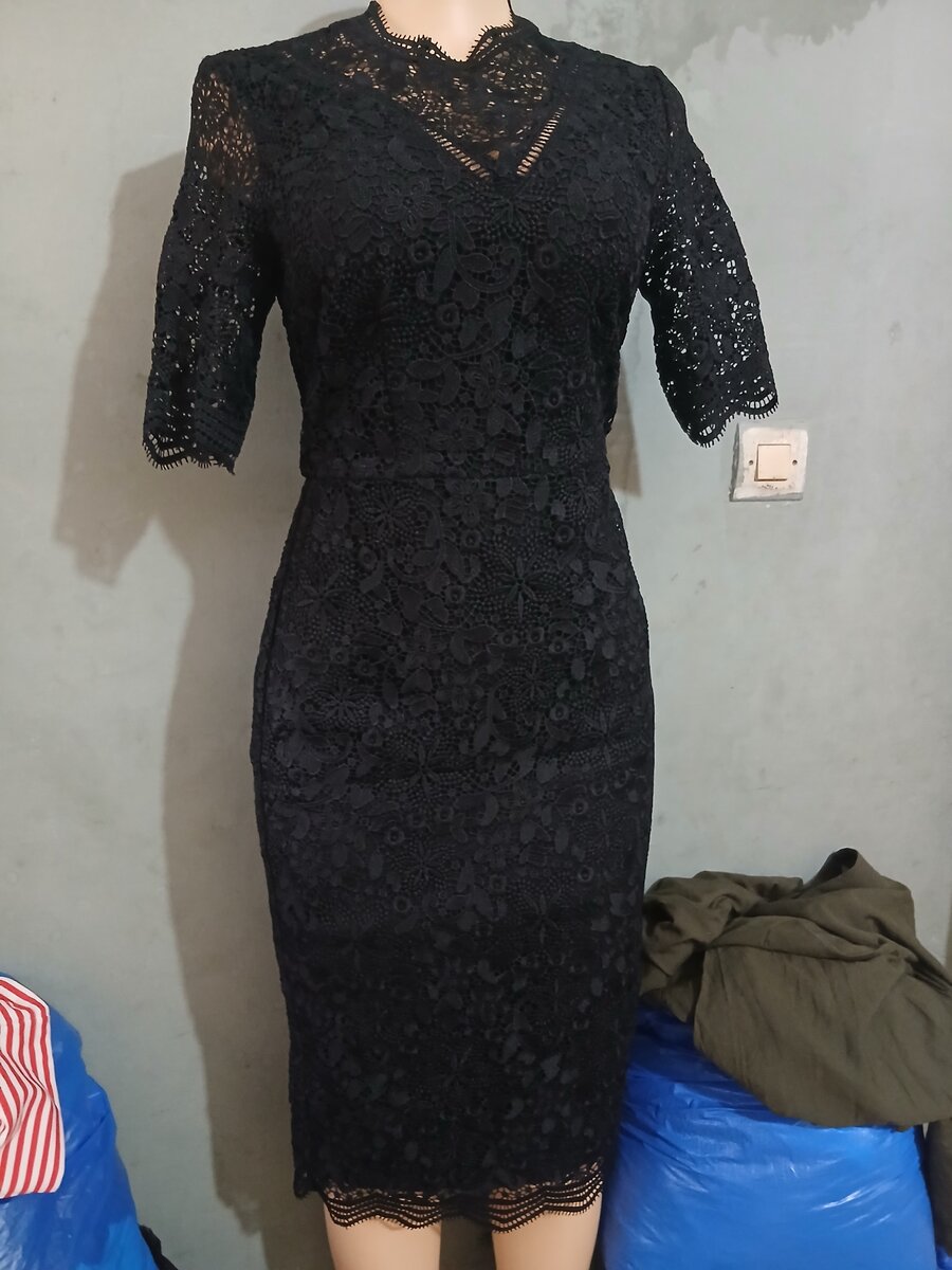 Découvrez cette magnifique robe en dentelle noire, idéale pour vos soirées et événements spéciaux. Le design ajusté et les détails en dentelle créent une silhouette élégante et sophistiquée. Parfaite pour un style chic et intemporel.