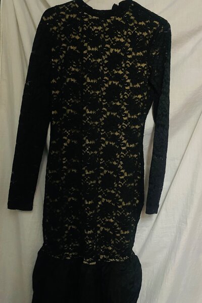 Découvrez cette robe en dentelle noire élégante, parfaite pour une soirée ou un événement spécial. Conçue avec des manches longues et un décolleté en V flatteur, elle accentue gracieusement votre silhouette. Fabriquée avec des détails en dentelle raffinée, elle est à la fois chic et confortable. Idéale pour captiver tous les regards lors de vos sorties.
