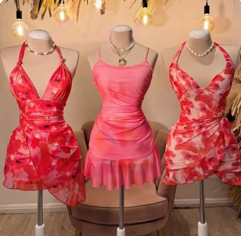 Robe rouge élégante en soie synthétique, parfaite pour les occasions spéciales. Conception féminine et fluide.