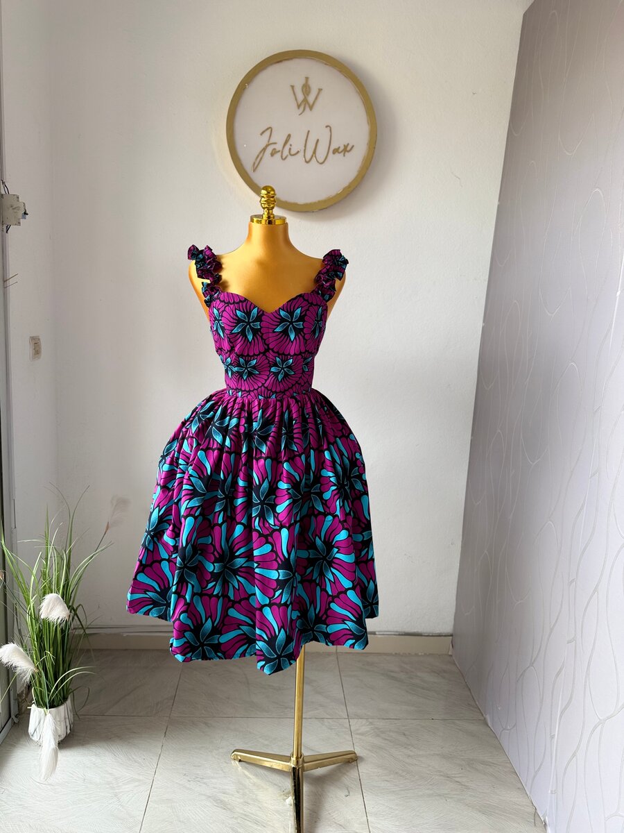 Découvrez cette magnifique robe en wax aux motifs floraux, parfaite pour toutes vos occasions spéciales. Avec son design vibrant et ses bretelles froncées, elle allie confort et style. Idéale pour les événements estivaux et les sorties de week-end. Adoptez un look unique et faites sensation partout où vous allez !