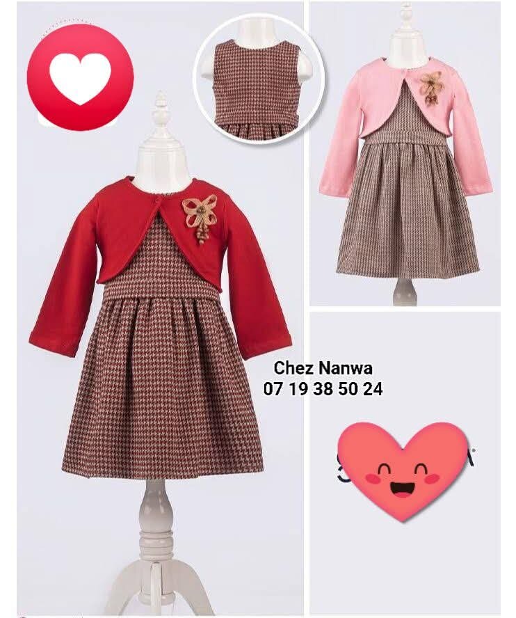 Charmante robe enfant en tissu à carreaux avec boléro amovible. Parfait pour les fêtes de fin d'année, sorties ou occasions spéciales. Disponible en rouge. Design classique qui plaît à toutes les petites fashionistas!