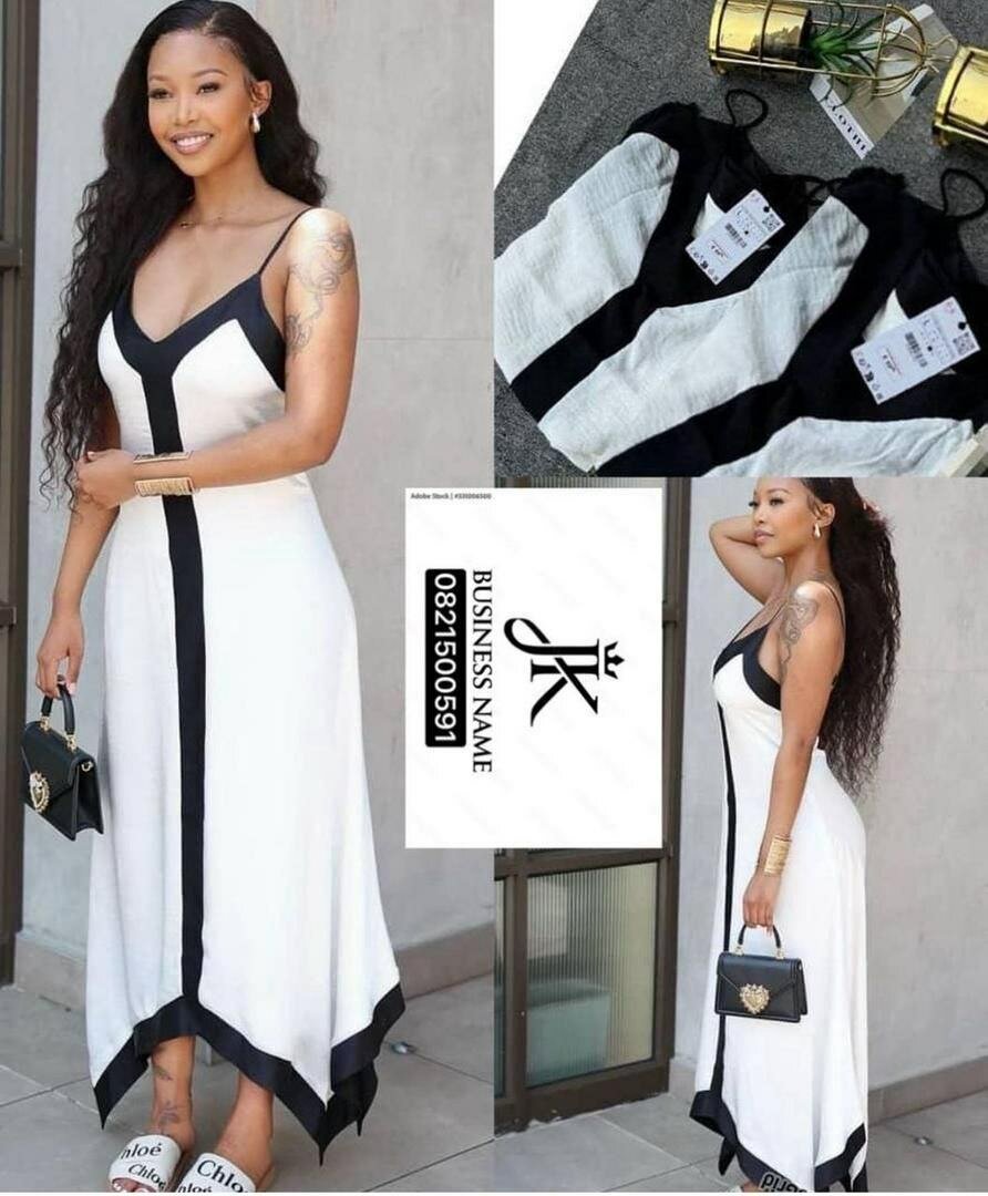 Découvrez cette robe d'été blanche avec des accents noirs, parfaite pour les sorties chics. Conception fluide, idéale pour les journées ensoleillées.