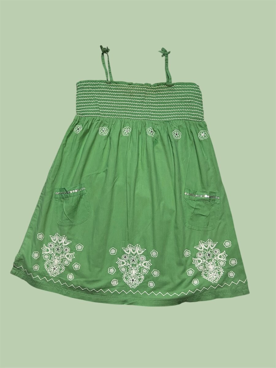 Cette robe verte vibrante est parfaite pour les petites filles. Conçue avec des motifs floraux délicats et des bretelles élégantes, c'est une pièce idéale pour les journées ensoleillées. Confortable et stylée, elle est parfaite pour les sorties estivales.