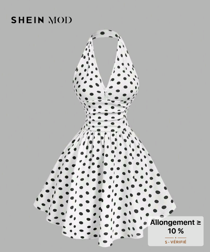 Cette robe évasée à pois combine style rétro et modernité. Parfaite pour l'été, elle met en valeur la silhouette avec son design cintré à la taille. Idéale pour les sorties décontractées ou les soirées estivales. Disponible chez Shein Mod.