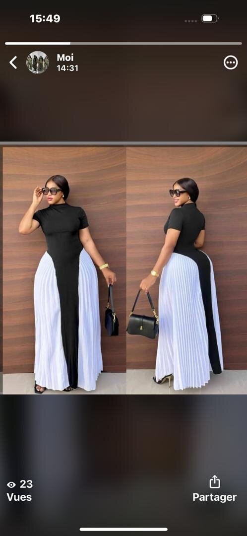 Découvrez notre élégante robe longue évasée bicolore, parfaite pour toutes vos occasions spéciales. Conçue avec un contraste moderne de noir et blanc, elle allie élégance et style. Idéale pour soirées ou événements, cette robe est un ajout chic à votre garde-robe.