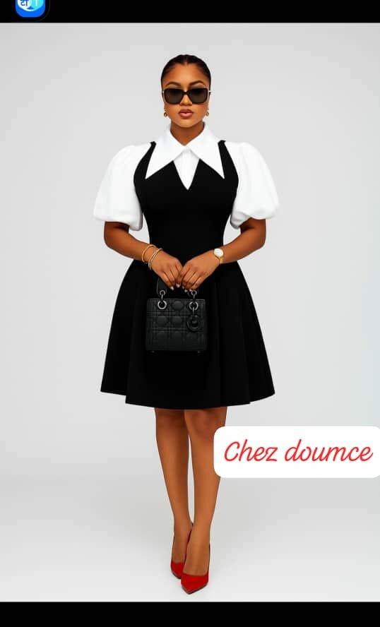 Découvrez notre robe évasée élégante avec manches bouffantes et col contrasté, parfaite pour un look chic et sophistiqué. Idéale pour soirées ou événements formels, elle offre confort et style.