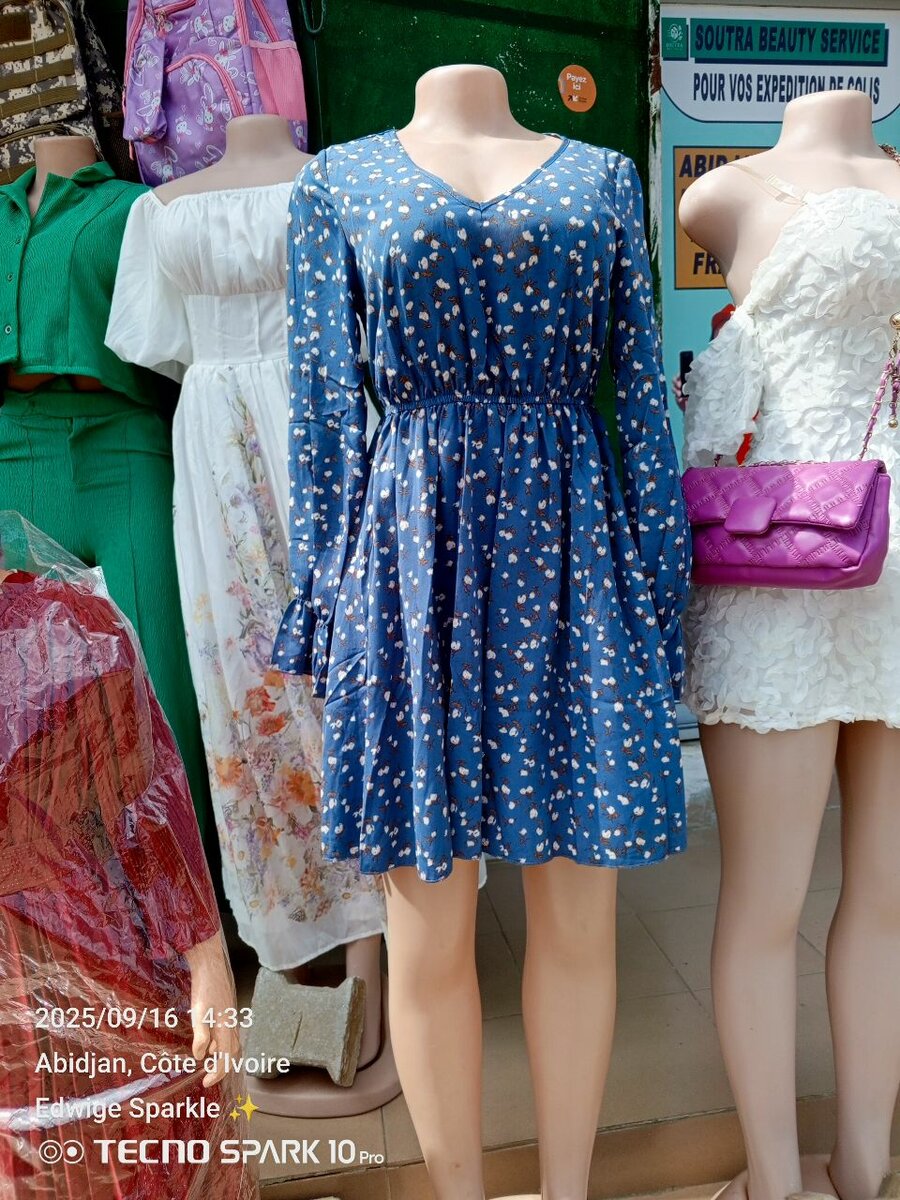 Découvrez notre robe élégante bleue à motifs blancs, idéale pour les sorties décontractées ou les événements spéciaux. Conçue pour offrir à la fois style et confort, cette robe met en valeur votre silhouette avec sa coupe cintrée. Parfaite pour ajouter une touche de glamour à votre garde-robe!