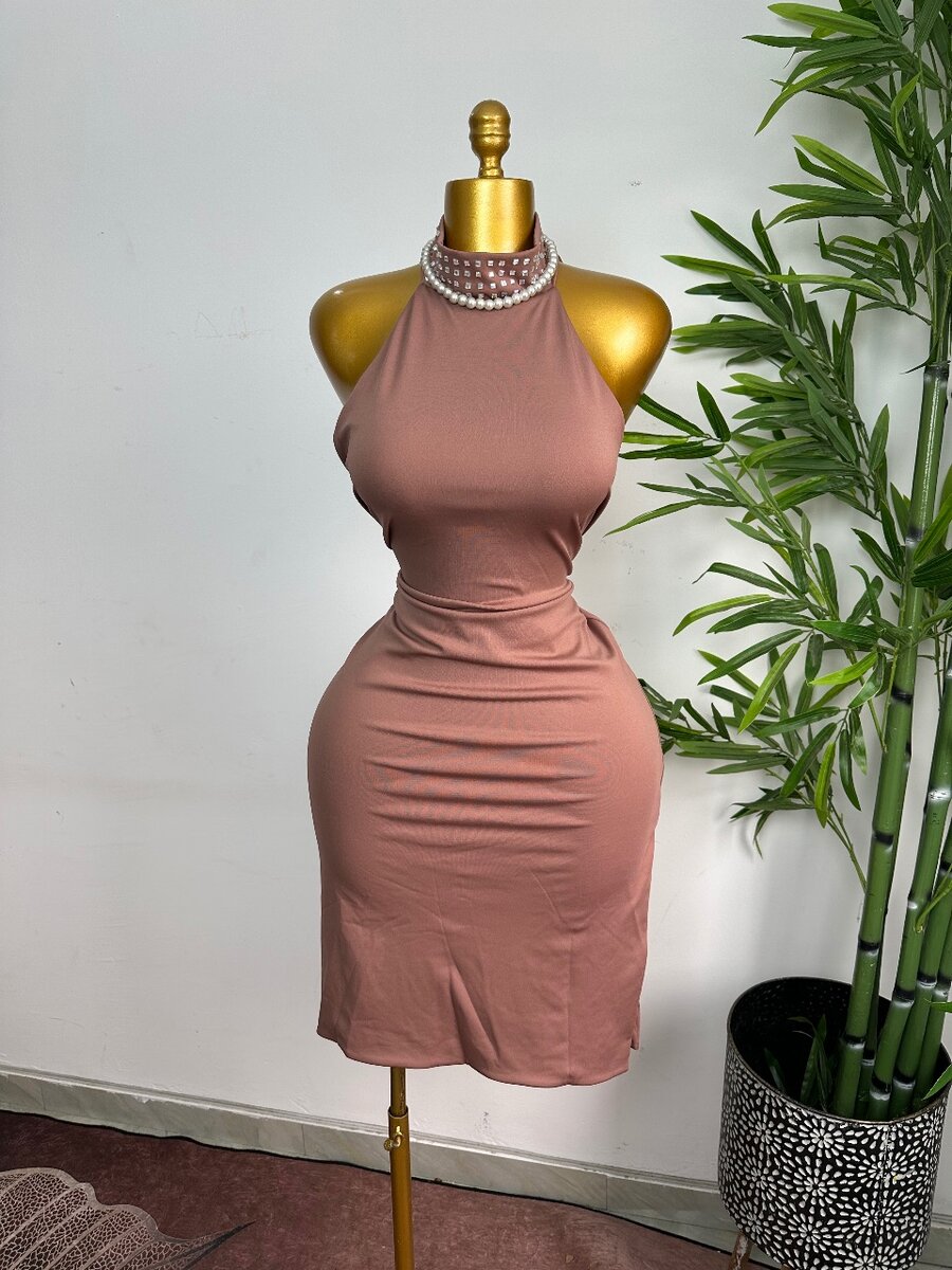 Découvrez cette robe chic couleur terracotta, parfaite pour des soirées élégantes. Conçue avec un col perlé et une coupe moulante, elle met en valeur votre silhouette. Idéale pour des événements spéciaux ou un dîner romantique. Soyez au cœur de l'attention avec cette robe incontournable!