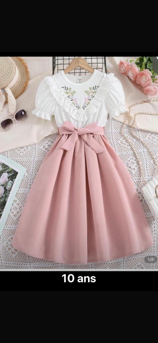 Découvrez cette robe élégante pour fille de 10 ans avec un design floral délicat. Parfaite pour les occasions spéciales ou les sorties estivales, elle assure confort et style avec sa jupe fluide et son joli noeud.