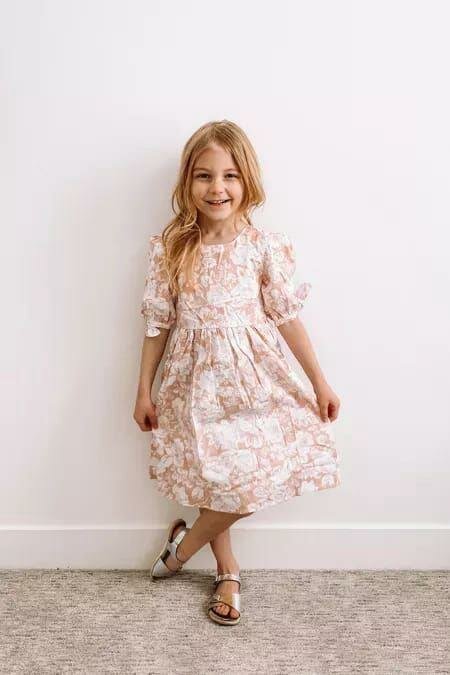 Adorable robe à motifs floraux pour fille, parfaite pour les occasions spéciales. Confectionnée dans un tissu doux et confortable, elle offre une coupe élégante et une grande liberté de mouvement.