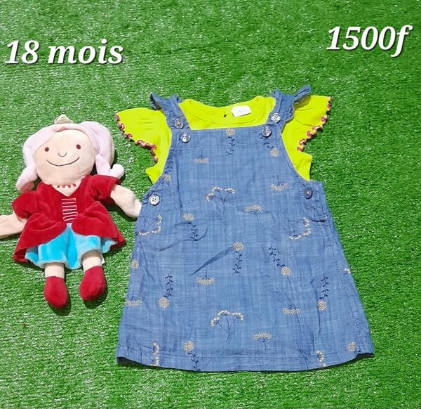 Ensemble pour fille, robe de soleil en jean + T-shirt 18 mois