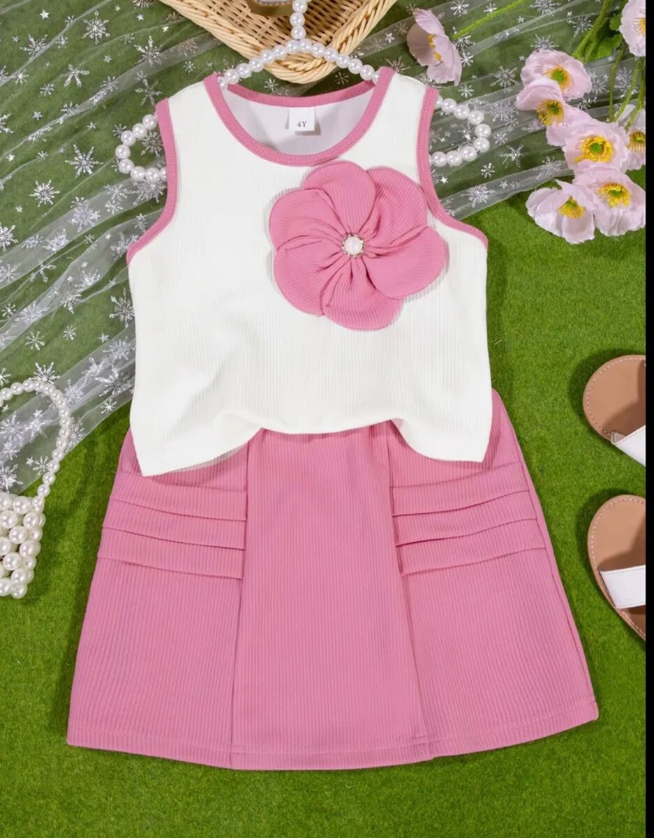 Ensemble enfant fleur rose