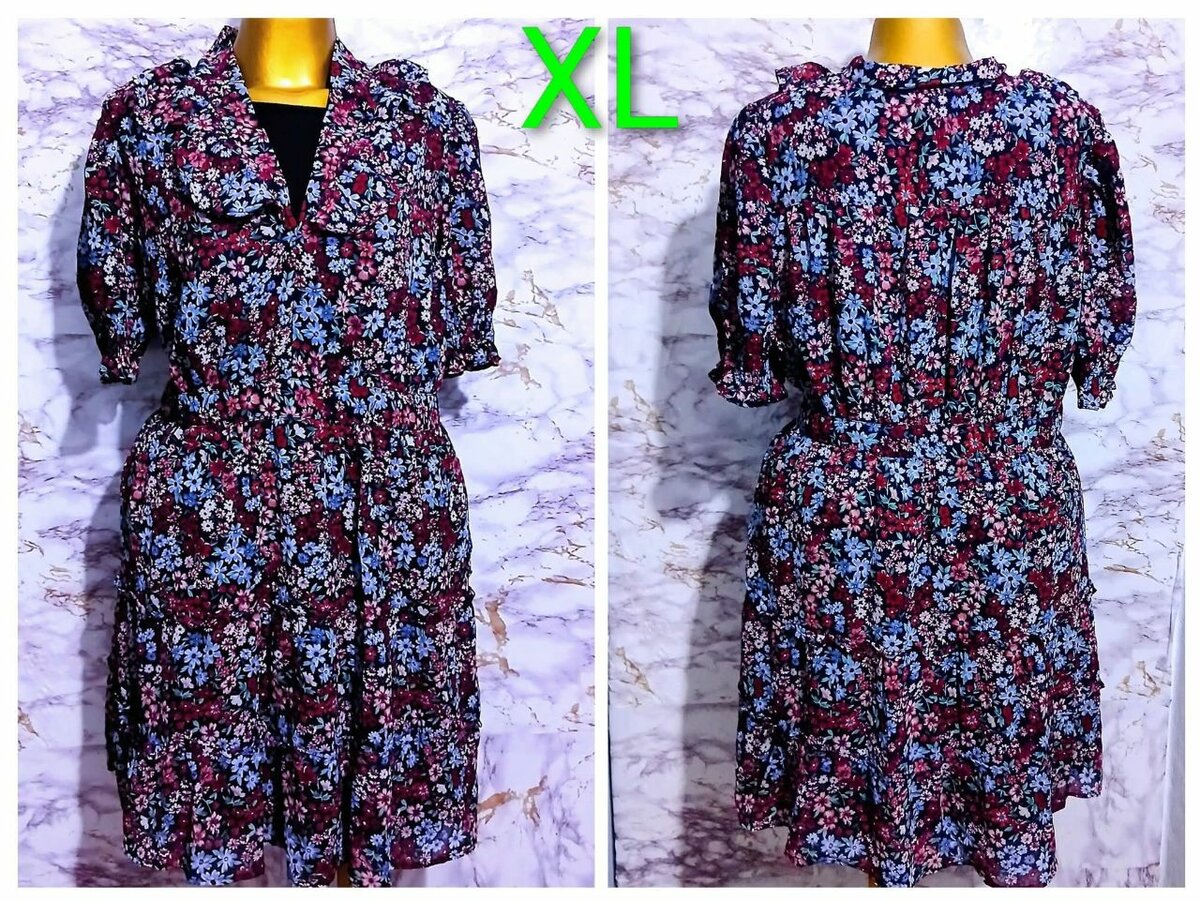 Découvrez cette robe fleurie élégante et confortable, idéale pour les occasions décontractées ou les sorties en ville. Conçue dans un tissu de qualité, elle offre un style raffiné et une coupe parfaite. La robe est disponible en taille XL. Associez-la à un haut noir pour un look chic et tendance.