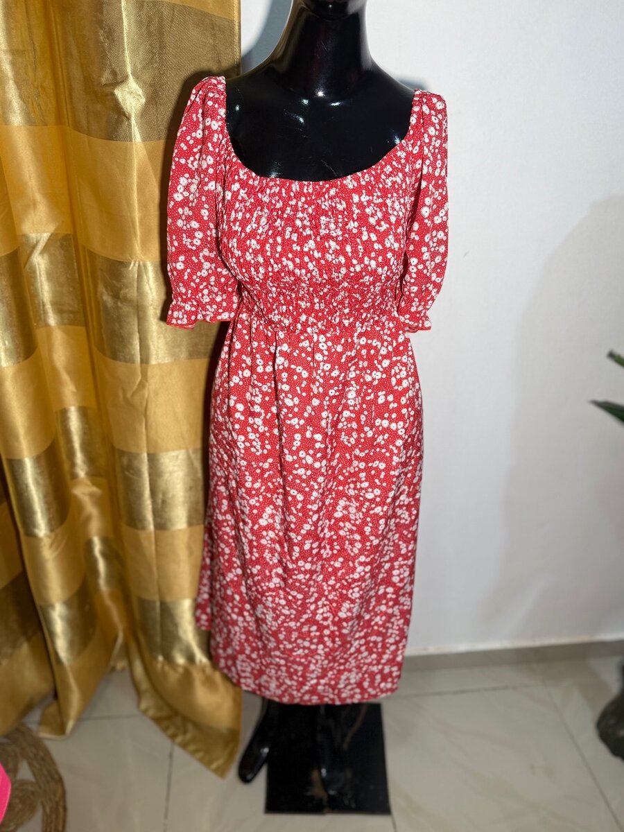 Cette robe fleurie rouge est parfaite pour un look estival chic. Sa coupe fluide et ses manches bouffantes apportent une touche féminine et élégante. Idéale pour les soirées d'été, elle vous garantit confort et style. Ne passez pas inaperçue avec ce choix audacieux et tendance !