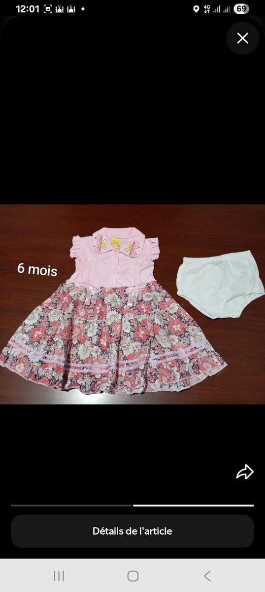 Charmante robe florale pour bébé de 6 mois avec culotte assortie. Idéale pour les belles occasions, fabriquée en tissu doux pour le confort de votre enfant.
