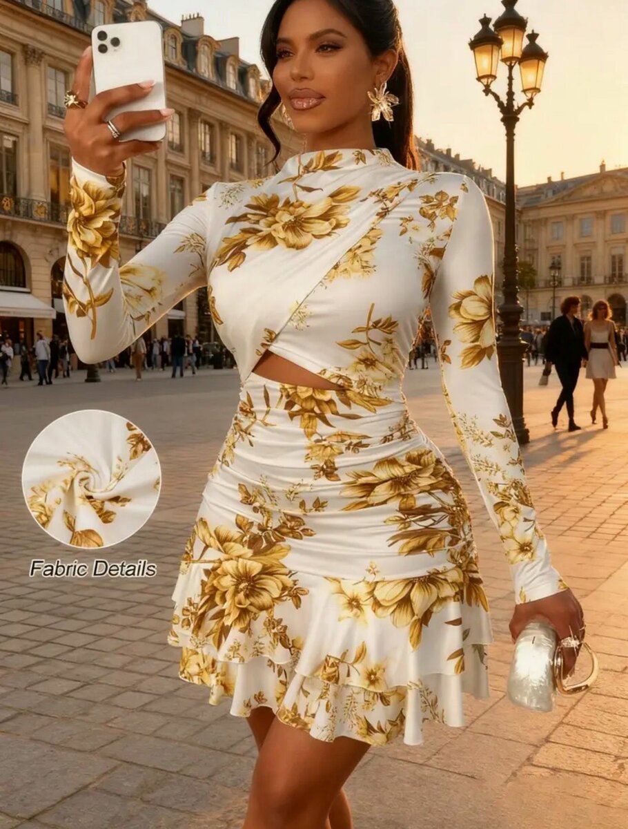 Découvrez cette robe florale chic et élégante parfaite pour toutes vos occasions spéciales. Avec son design à découpes et ses motifs fleuris dorés, elle allie style et sophistication. Confectionnée avec soin pour offrir confort et allure, elle est idéale pour un look glamour et tendance. Parfaite pour des dîners, réceptions ou sorties en ville. Un choix incontournable pour se démarquer avec élégance.