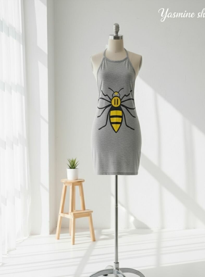 Découvrez notre robe grise à imprimé abeille, idéale pour un look décontracté et tendance. Conçue pour apporter confort et style, cette robe est parfaite pour une sortie estivale ou une journée décontractée. Son design unique avec un motif d'abeille ravira les amoureux de la nature et de la mode.