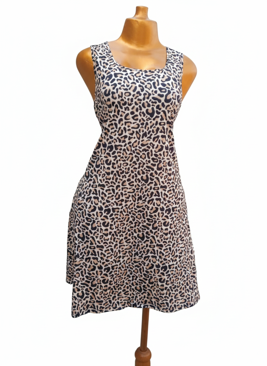 Cette robe sans manches au motif léopard audacieux est parfaite pour une look élégant et décontracté. Fabriquée avec des matériaux confortables, elle est idéale pour toutes vos sorties estivales. Sa coupe flatteuse mettra en valeur votre silhouette.