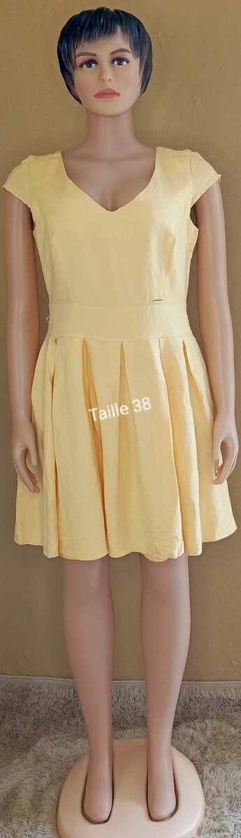 Découvrez cette robe jaune éclatante, parfaite pour les journées ensoleillées. Confectionnée avec soin pour offrir un confort optimal, elle met en valeur votre silhouette grâce à sa coupe évasée. Idéale pour une sortie décontractée ou une soirée estivale, cette robe est un incontournable de la garde-robe. Sa couleur vive apporte de la fraîcheur et du dynamisme à votre tenue. Ne manquez pas l'occasion d'illuminer votre style avec cette pièce unique!