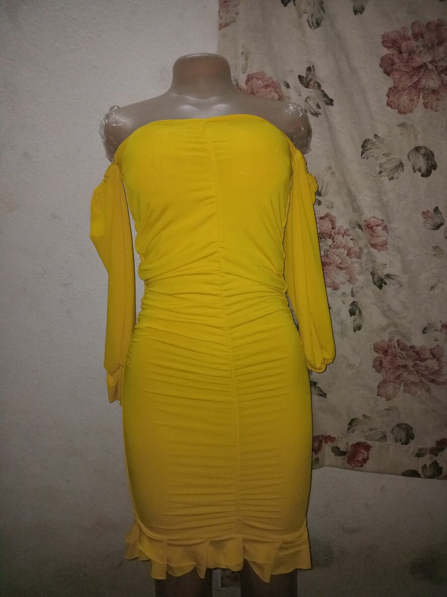 Cette robe jaune éclatante à épaules dénudées est le choix parfait pour un look audacieux et élégant. Conçue avec un tissu froncé flatteur, elle met en valeur votre silhouette tout en offrant confort et style. Parfaite pour les soirées et occasions spéciales.