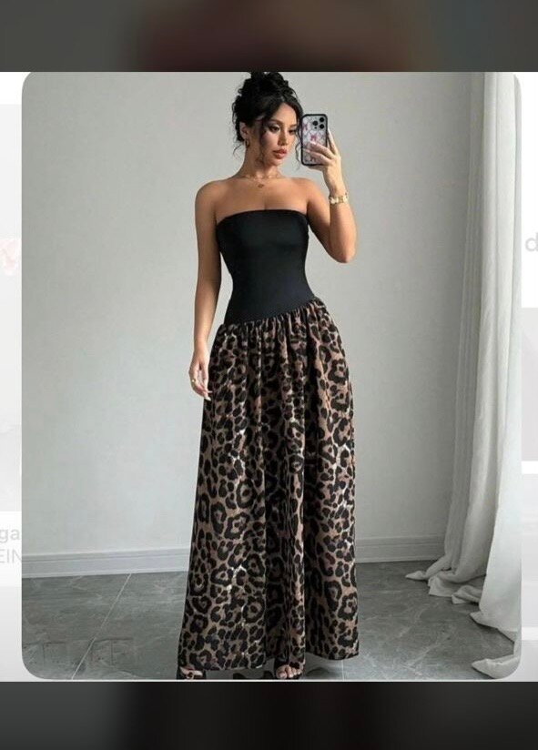 Élégante robe tubulaire avec un motif léopard audacieux, idéale pour les soirées ou événements spéciaux. Style sans manches pour un look chic et moderne. Parfaite pour ajouter une touche de glamour à votre garde-robe.