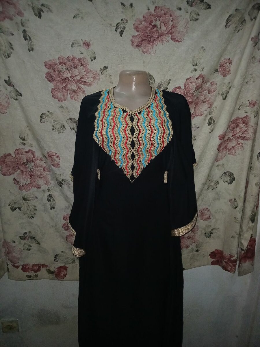 Découvrez cette robe longue noire avec des motifs ethniques colorés. Parfaite pour des occasions spéciales, elle offre confort et style. Idéale pour se démarquer avec élégance.