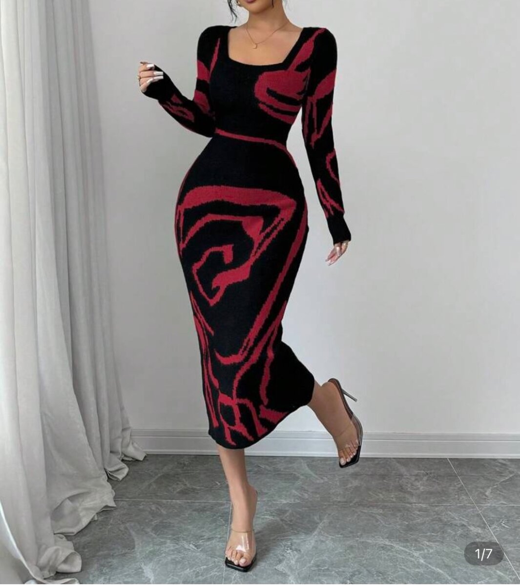 Cette robe longue ajustée est idéale pour toutes les occasions spéciales. Son motif artistique et sa coupe flatteuse mettent en valeur la silhouette, offrant un look sophistiqué et chic. Parfaite pour des soirées cocktail ou des dîners élégants, cette robe assure un style inoubliable.