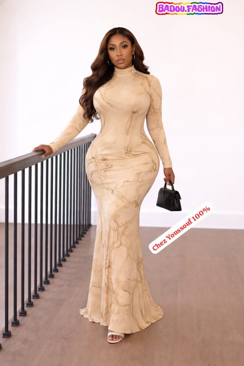 Découvrez cette robe longue beige élégante, parfaite pour les occasions spéciales. Conçue pour mettre en valeur votre silhouette, elle est fabriquée dans un tissu confortable. Associez-la à des accessoires pour un look irrésistible.