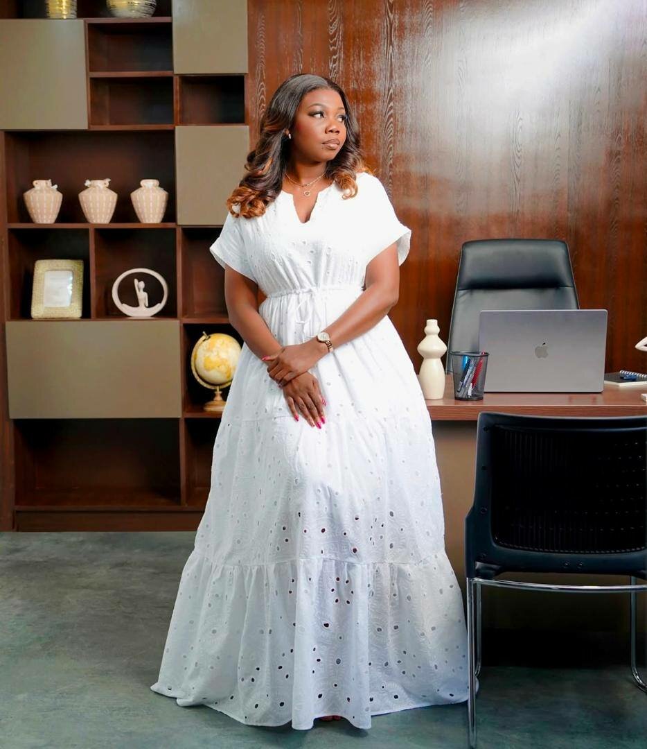 Robe longue en coton blanc, idéale pour des occasions formelles et décontractées. Confortable et chic, avec un design brodé élégant. Parfaite pour l'été ou les événements en plein air.