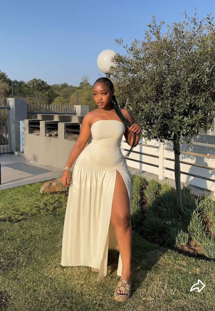 Élégante robe longue blanche sans bretelles avec fente sur le côté. Parfaite pour les occasions spéciales ou les soirées d'été.