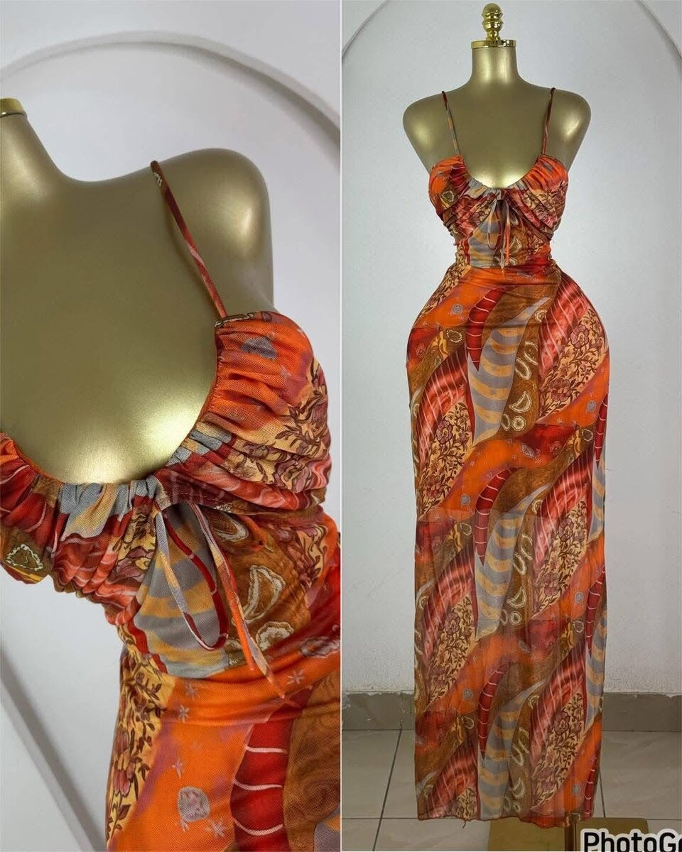 Robe longue bohème avec imprimé vibrant. Parfait pour les soirées d'été et occasions spéciales. Confortable et élégant, ce modèle met en valeur votre silhouette avec des bretelles ajustables. Portez-la pour un look unique et audacieux.