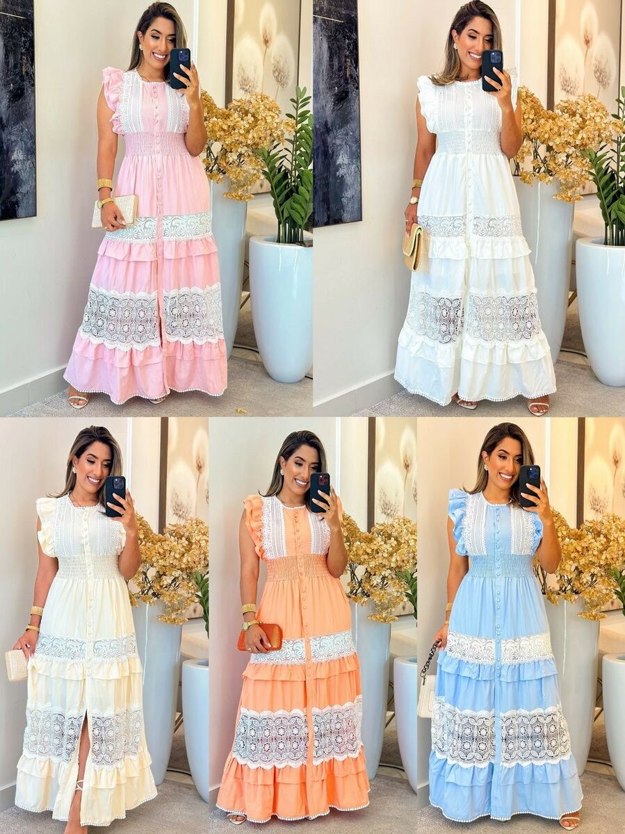 Élégante robe longue bohème avec des détails en dentelle délicate. Idéale pour l'été et les occasions spéciales, elle vous offre un look romantique et raffiné. Disponible en plusieurs couleurs pastel pour s'adapter à votre style.