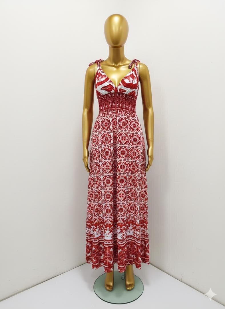 Adoptez le style bohème avec cette robe longue rouge à motifs. Conçue pour les journées d'été, elle offre un confort optimal grâce à sa coupe fluide. Idéale pour les sorties décontractées ou les soirées sur la plage, cette robe est un incontournable pour toute garde-robe estivale.