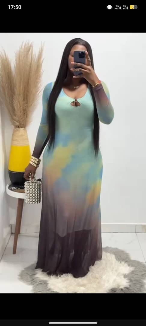 Cette robe longue avec un motif dégradé est l'ajout parfait à votre garde-robe. Fabriquée dans un tissu doux et extensible, elle offre un confort incroyable pour toutes les occasions. Que vous sortiez en ville ou restiez à la maison, cette robe assure style et aisance. Le design élégant convient aussi bien pour des sorties décontractées que pour des événements plus formels.